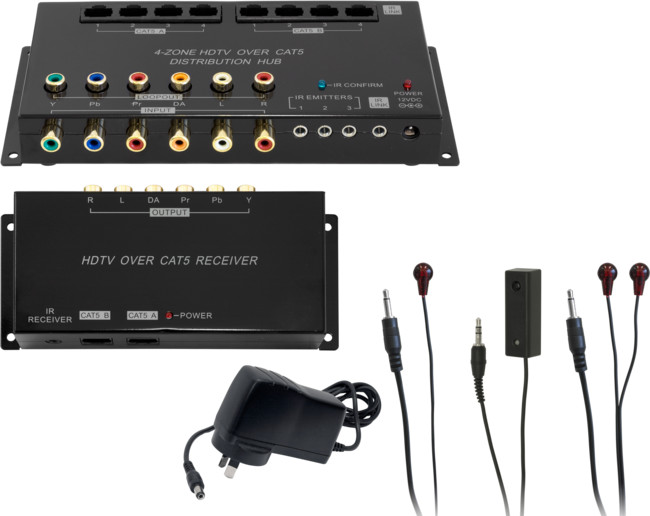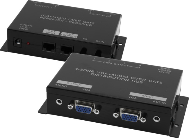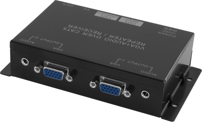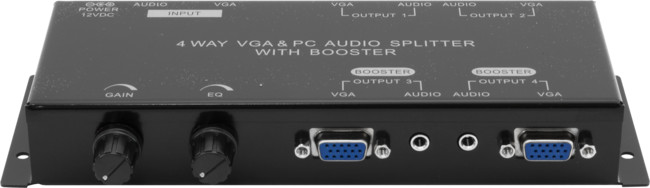 - Allows two VGA source devices to provide video and audioto four displays / projectors.
